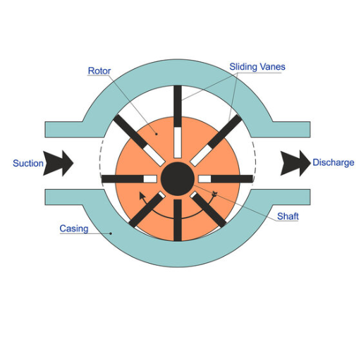 - 로터가 회전하면서 베인이 유체를 흡입하고 배출하는 구조입니다.