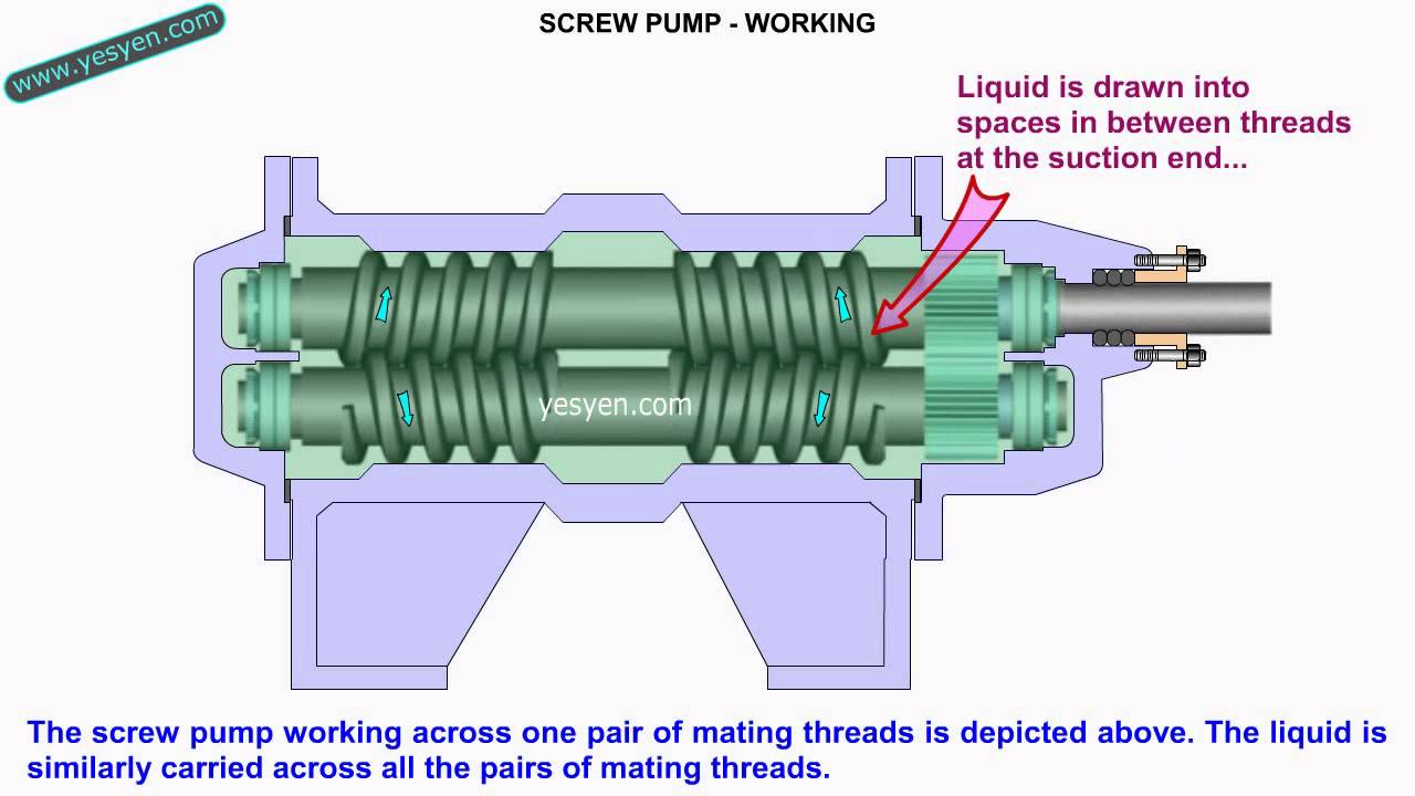 - 스크루 펌프는 스크루가 서로 맞물려 회전하면서 유체가 축 방향으로 이동하는 펌프입니다.